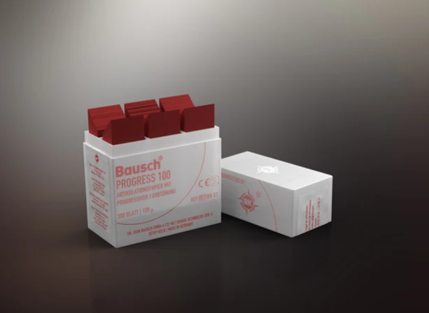 Bausch progresif renk değişimli artikülasyon kağıdı, çiğneme basıncına bağlı renk değişimi yoluyla farklı ısırma kuvvetlerini gösterir. Diş hekimi saniyeler içinde basınç dağılımını hesap edebilir.