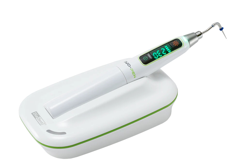Duo-Pen , kök kanal dolgu malzemesini (güta perka) kesmek, yumuşatmak, paketlemek ve sıkıştırmak için ısı kullanan kablosuz, sıcak dikey bir sıkıştırma cihazıdır.