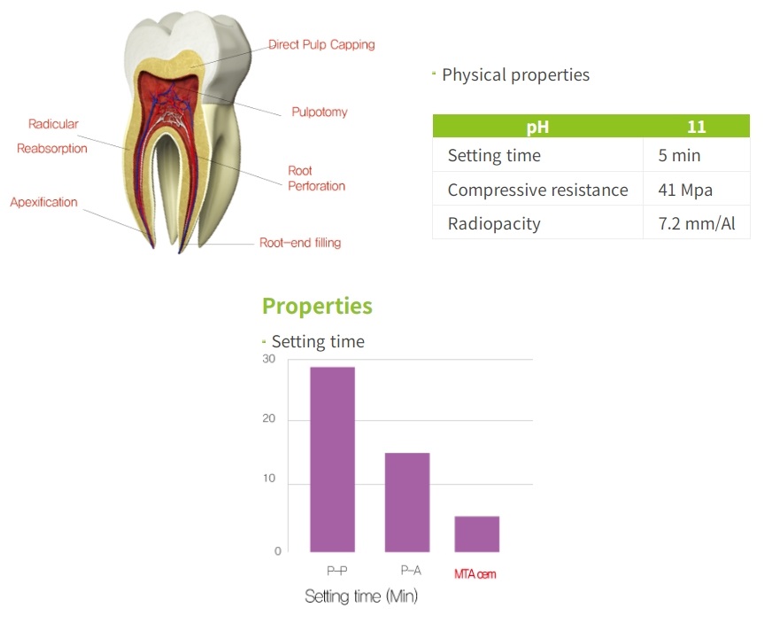 Çok ince toz partiküllerden oluşan MTA ,hidrofilik bir malzeme olup, distile su ile karıştırılır
