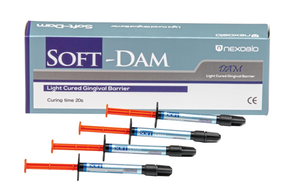 Soft-Dam, beyazlatılacak dişlerin yakınındaki dokuyu izole etmek için kullanılan, pasif olarak yapışkan, metakrilat bazlı bir reçine bariyeridir.