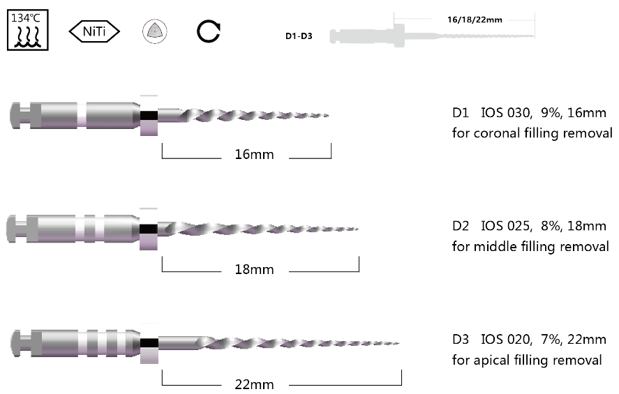 Döner sistem geri çekilme için tasarlanmıştır. Sistem, kolay şekil hafızası kontrolü ile esnekliğe sahiptir. Bu sistemin metalurjik özellikleri, belirgin kıvrımların varlığında bile, şeklini değiştirmeden ve yörüngeyi taşımadan, kök duvarlarının kalınlığını maksimum düzeyde koruyarak tıkanıklık kütlesini kök kanalından etkili ve eşit bir şekilde çıkarmayı mümkün kılar.