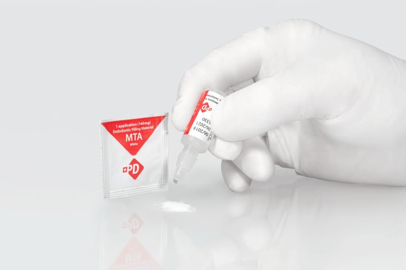 PD™ MTA White, kalsiyum tungstat ile formüle edilmiş ve çeşitli prosedürler için hızlı, sorunsuz ve kolay bir şekilde doğru kıvamda karıştırılmak üzere tasarlanmış bir mineral trioksit agrega onarım simanı. Su varlığında sertleşen ince hidrofilik parçacıklardan oluşan PD™ MTA White, kök kanal sistemi ile çevre dokular arasındaki yolları kapatarak bakteri migrasyonunu önemli ölçüde azaltır.