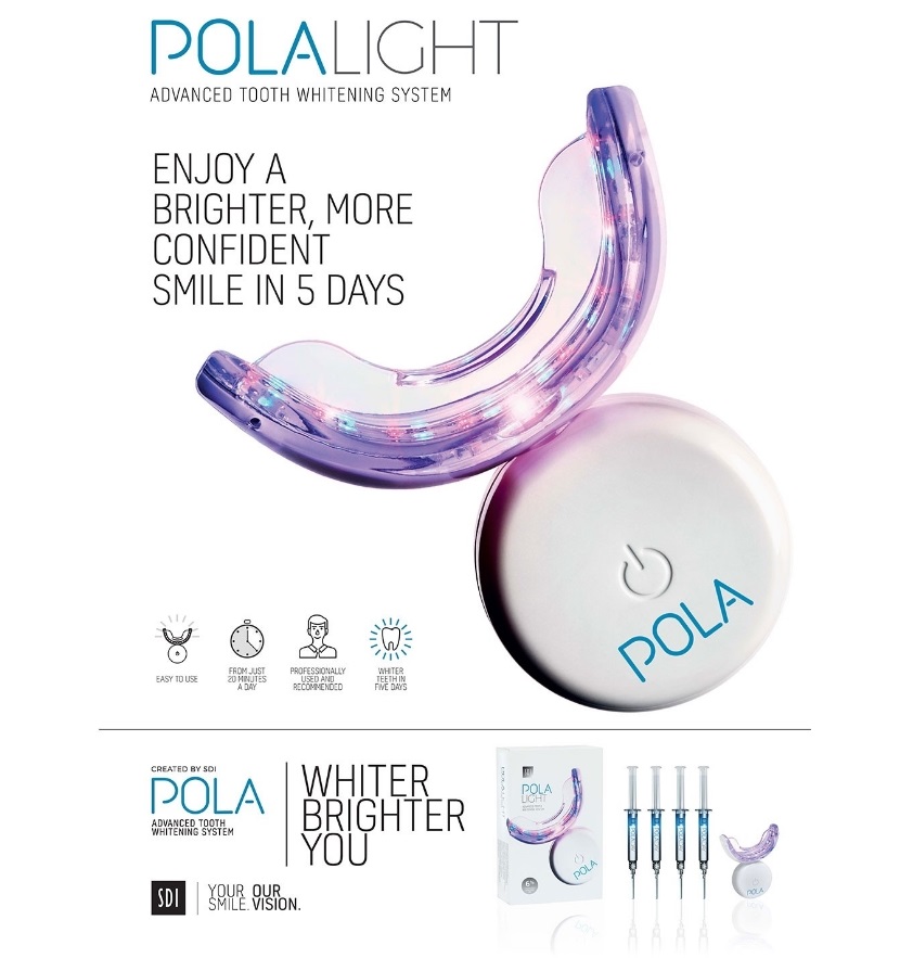 SDI Pola'nın ödüllü beyazlatma formüllerini, beyazlatma prosedürünü hızlandırmaya yardımcı olan küçük bir LED cihaz ile birleştiren, gelişmiş bir diş beyazlatma sistemi olan YENİ Pola Light'ın lansmanını duyurmaktan büyük heyecan duyuyoruz.