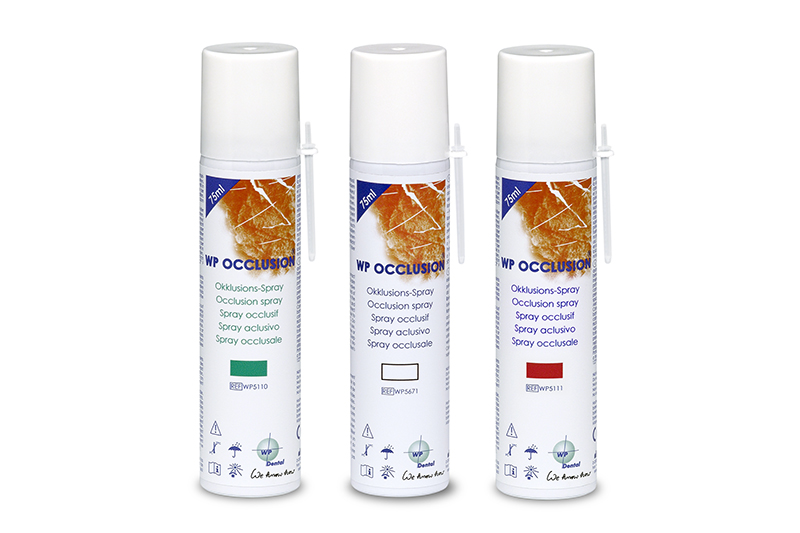 WP Occlusion, protez çalışmalarında temas noktalarını belirtmek için kullanılan, nane kokulu çok ince bir spreydir