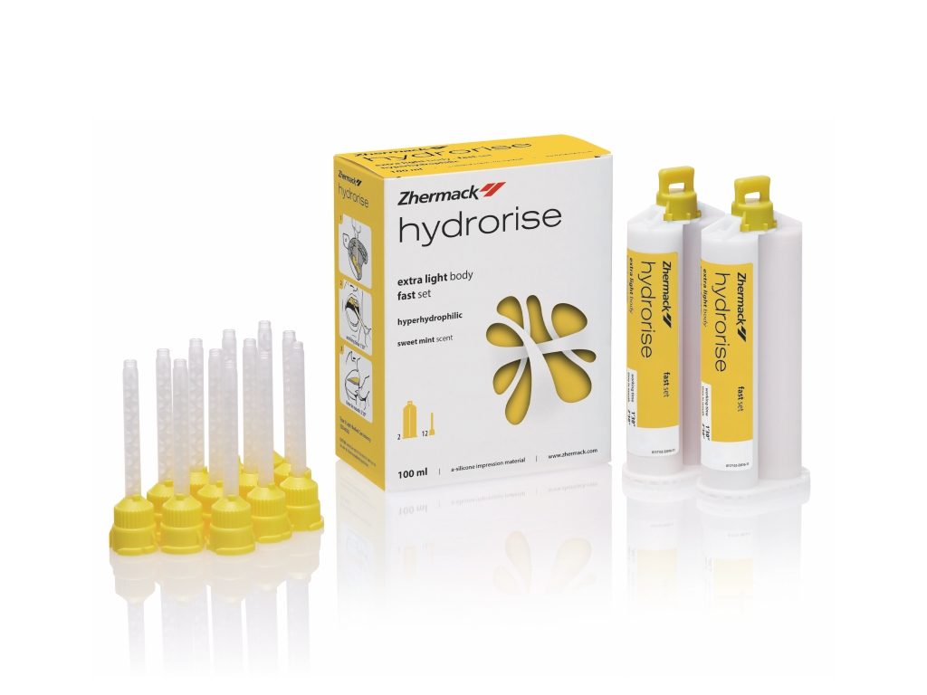 Zhermack Hydrorise Extra Light Body Sabit protezler için düşük viskoziteli Hyperhidrofilik A Silikon.